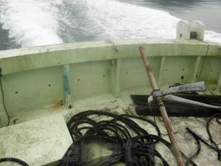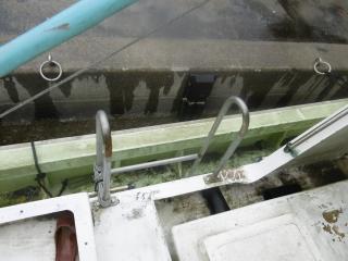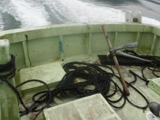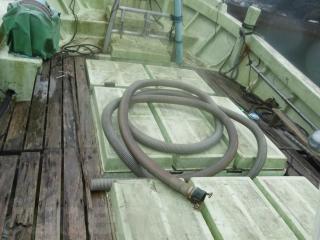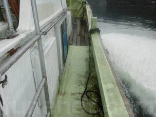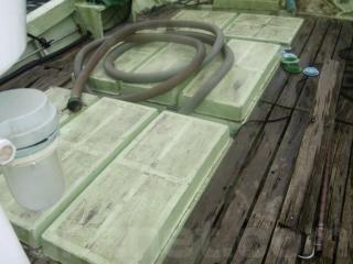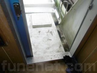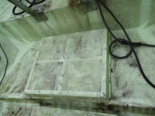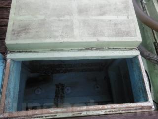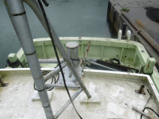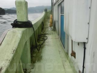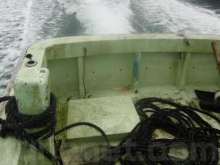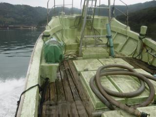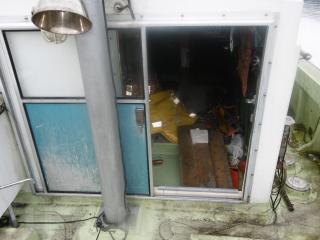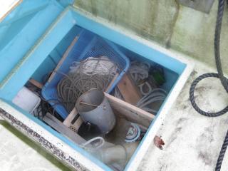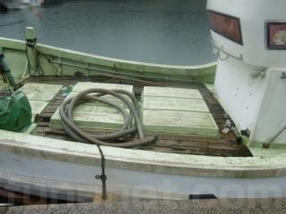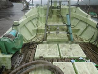 ◆フロントデッキは硬く良好です、生けすは3間あります、中仕切りを除けています、活魚を運んでいました。
