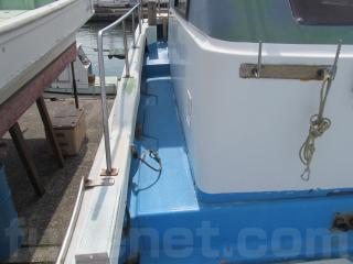 フロントデッキは広めで、横は浅めに造ってあります。3オーナー艇。
