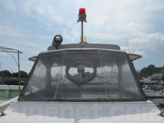 取材時は上架されていましたので、エンジン始動確認及び試乗をしていません。沖乗りでの状態や細かい所までは解りかねますので、ご見学の際にはご試乗頂き、全ての事項をご確認の上でご購入をお決め頂きますようお願い致します。