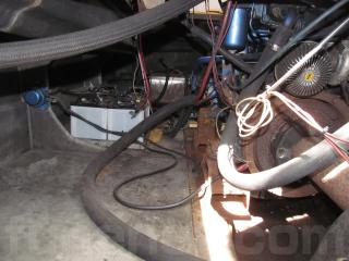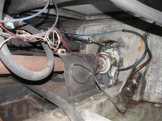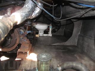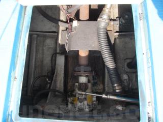 ステンレスの燃料タンク200Lの横に、手動式のマリントイレが設置されています。