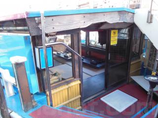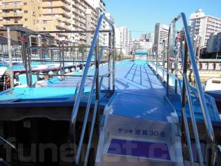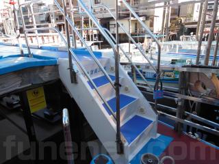 上部デッキに上がる階段があります。手すりなどの装備もあり、停船時にはお客様がデッキに上がることが出来ます。