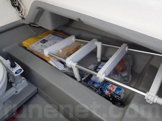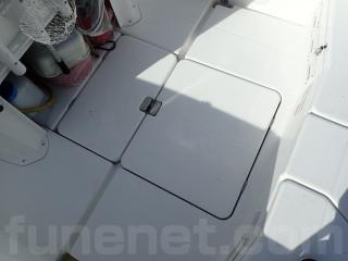 〇デッキ後部のハッチには、オプション装備のFRP製の燃料タンク100Lが装備されています。