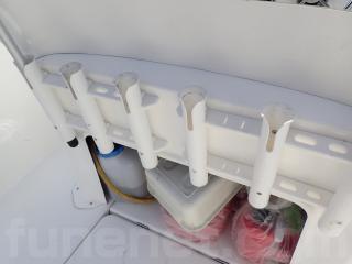 〇色んな釣りものに対応できるように、ドライバーシート後方に6連のロッドホルダー設置。