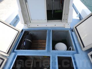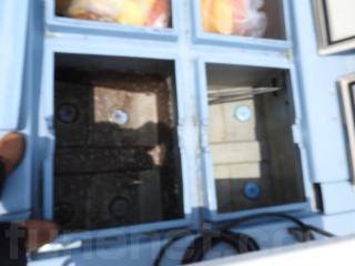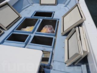 ◆フロントデッキに生けすは2間あります、問題なく使用できそうです、生けすのハッチは4枚有ります真ん中にハッチレールをつけていますレールは取り外し可能です。