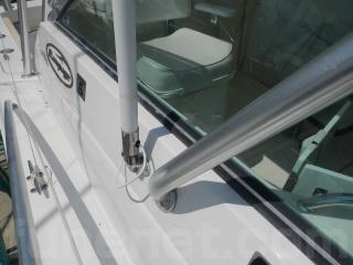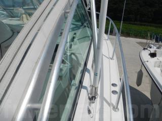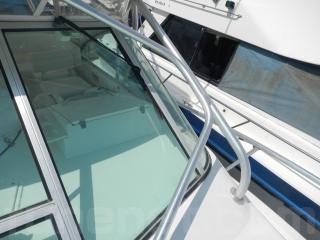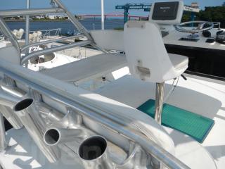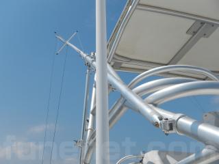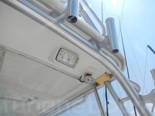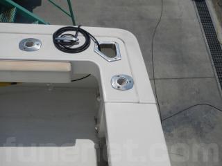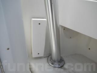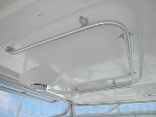 操船席をとりまくなはアルミパイプで、頑丈に仕上げられています。こちらも毎年ガラスコーティングを施しているため、よく見られるアルミの白くなる劣化もありません