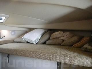 前部のバースはソファー形式にも、4人が寝られるベットにもセット可能です。メインキャビンのソファーも引き出すことでダブルサイズのベッドにもなります。