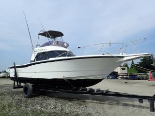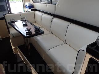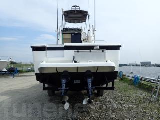 ご紹介致します船は、ヤマハ FC31EXT(平成6年進水)です。こちらの船は、セミウオークアラウンドデッキタイプで、ボート周りがすべてフィッシングスペースとなっており、釣りやデッキ間の移動もスムーズに行え、またキャビンも十分広く、家族や仲間で楽しくクルージングと1年中楽しめるヤマハの人気艇となっております。また、入門艇の方にもお勧めです。