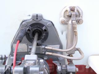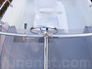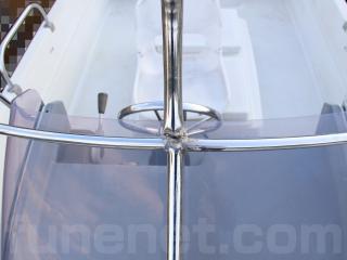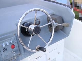 ◆ヘルムハンドル(油圧操舵)はステンレス製のデストロイヤーハンドルに交換されていて、ハンドルノブが溶接されています。離着岸時は便利そうです。なお、ヘルムハンドルは軽く回りヘルムポンプからのオイル漏れ等も見受けられませんでした。
