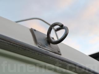 ◆両舷前後(計4か所)に支柱を立てられるような加工が施されています。おそらく屋形テントのような物を取り付けられるようにしているものと思われます。
