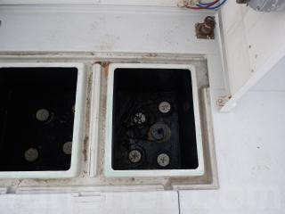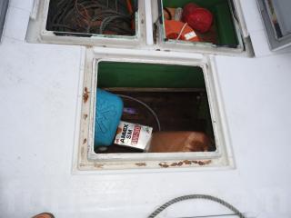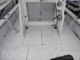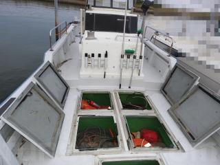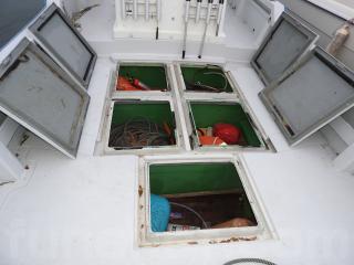 ◆艫デッキに2間イケスあります、イケスは広く深いです、ハッチは問題なく使用できます、フロントデッキに5間物入れ有ります、4間はイケスになります。