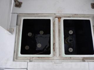 ◆キャビンの両サイドに風避けのアクリル板を取り付けています、アクリル板はヒビ割れしています。