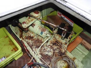 ◆作業製は良いキャビンです、アルミの引き戸を開ければエンジン室です、その上棚にパネルなどを設置しています。