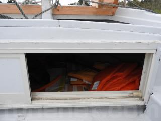 ◆バウの物入れは引き戸です、法定備品を収納されています。