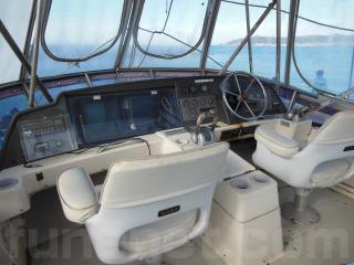 アワーメーターは右舷3358時間、左舷3364時間です。巡航速度は25ノット、最高速度は28ノットです。