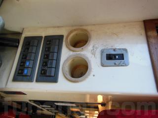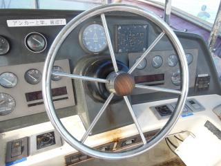 FB操船席にはコンパス、GPS魚探(YAMAHA YFV-10TD)、レーダー(FURUNO)、各種無線、サーチライトコントロール、フラップコントロール、ウィンドシールド等が装備されています。