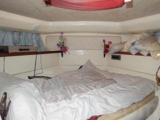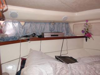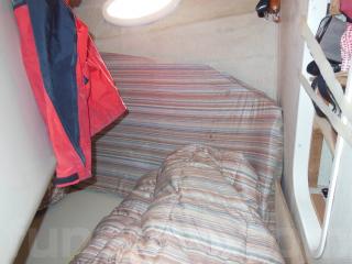 そのまま進むと前方にはバウキャビンがあり大人2人がゆったりと横になることが出来ます。左舷側にもカーテンで仕切られているベッドルームがあります。