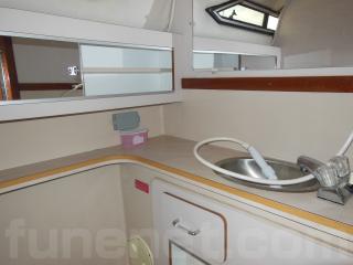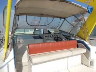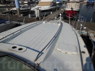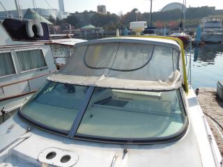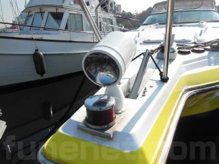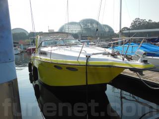 取材時は水上係留保管状態での取材でした。エンジンの始動や走行状態の確認、船底の確認等は一切行っておりません。ご見学の際には、全ての事項をご確認の上、ご購入をお決め頂きますようお願い致します。