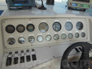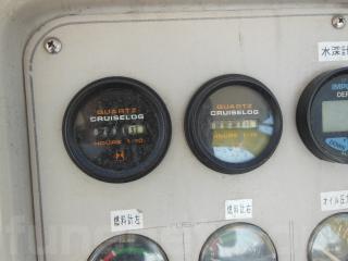 燃料タンク容量は400リットルです。巡航速度は25ノット、最高速度は30ノットです。アワーメーターは右舷423時間、左舷491時間です。