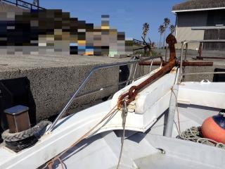 *右舷側、アンカーレールのステンレスローラーは取り外します。