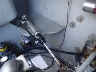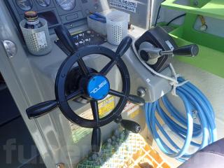・ハードトップタイプで、非常に操船席からの視界も良く、操船席周りは、コンパス・GPS魚探・計器類、ステレオが集結されています。また、天井にはスカイライトハッチがあります。