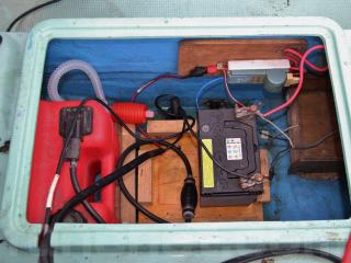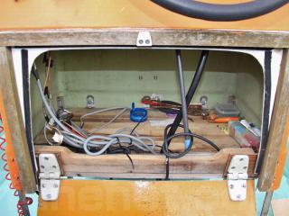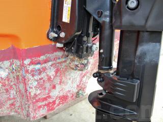 ◆操舵はワイヤー式で、比較的最近ワイヤーを交換されたとの事で取材時は軽く動きました。なお、船外機の始動、チルトの上下は操船部に居ながらにして操作可能です。