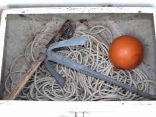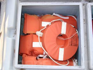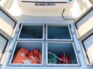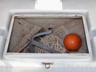 ◆法定備品は救命胴衣×9着と救命浮環×1個、アンカー×1個がデッキのストレージに入っています。(検査受検には不足しています。)