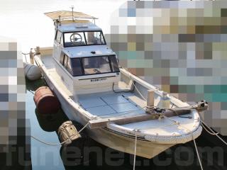 ◆操船席には扶桑製のGPS魚探を装備されています。なお、フロントデッキ(オモテ)にはアンカーウィンチが装備され、カンザシも綺麗です。また、アフトデッキ(トモ)にはオーニングが装備されています。船体はストックに近くこれから自分好みに仕上げたい方には面白い個体だと思います。各種釣りはもちろん、作業船や運搬船としても良いのかもしれません。なお、平成元年進水という船齢から鑑みると比較的傷も少ない船体で、デッキの状態も硬く良好です。また、船体には過去の艤装取り付け痕なども少ないです。