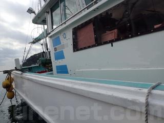 搭載していますエンジンはヤンマーディーゼルエンジン 4CX-ET ディーゼルターボ 1基 定格出力190ps 2500回転 最大230馬力 漁船法50馬力