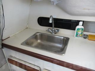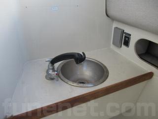 キャビン入口を入るとまず左舷側にギャレーがあります。ギャレーにはシンク、電子レンジ、冷蔵庫などがあります。
