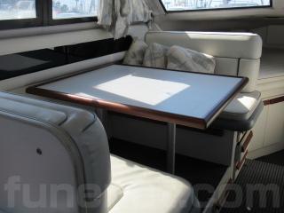 メインキャビンの右舷側には大きなソファー、左舷側にはテーブルとソファーが装備されていてとても広い空間が確保されています。また。右舷側にはトイレも装備されています。