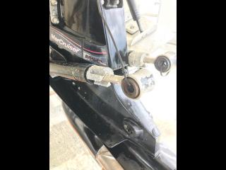 ウェイクやバナナボートなどの引っ張りものができるように、ワイドなトランサムステップを増設されています。とても頑丈です。