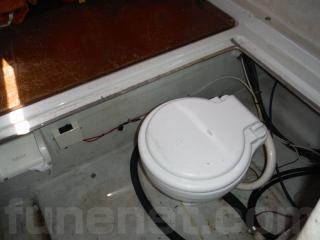 センターカディ艇ながらキャビンもあり、さらにマリントイレも装備されています。
