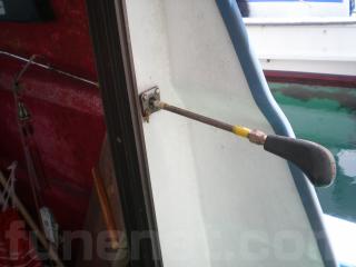 ブリッジの前方に設置されているリモコンは、長い棒でポールに繋げてあり、デッキの上のどこからでも操作ができるように工夫されています。
