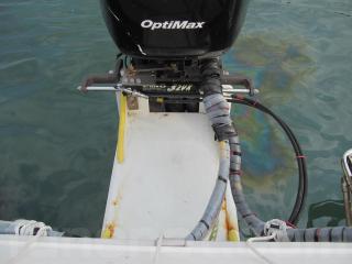もともとはディーゼルエンジンのドライブ艇だったのですが、ブラケットを補修、補強され船外機を搭載されています。