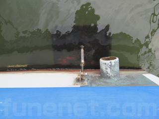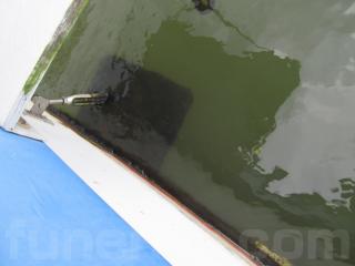 船底は、河川係留ですので牡蠣ではなく藻類がけっこう付着して汚れています。
