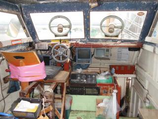 操船席にはGPS魚探(KODEN GTD-111)、レーダー(KODEN MD-3000)、回転窓、マイク等が装備されています。