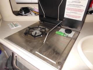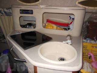 左舷側はギャレーになります。シンク、冷蔵庫、ガスコンロ等の設備があります。