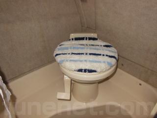 入口を入るとまず右舷側には手動マリントイレになります。とても綺麗に使用されています。