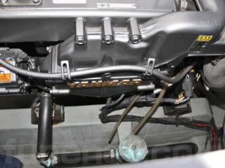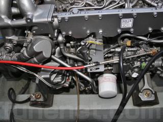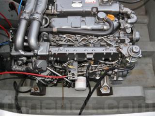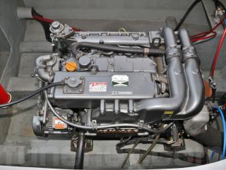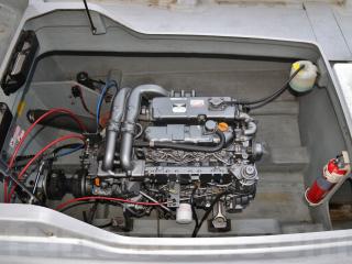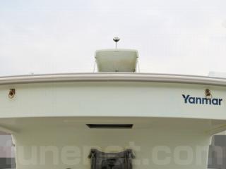 ◆この艇の大きなウリの一つである”マルチドライブ”はヤンマーが独自に開発したアウトドライブ機構で、船外に付いているアウトドライブ部にはクラッチに相当する機構が無く、エンジンの後ろにある湿式多板クラッチでエンジンの回転をプロペラに繋いでいます。マルチドライブでないエンジンですと、船外のアウトドライブのコーンクラッチ手前までの機構が回転する為、チルトアップした状態ではボールジョイントが壊れてしまう可能性があり、エンジン始動時は必ずチルトダウンしておく必要がありますが、マルチドライブですとチルトアップをしたままエンジン始動が可能です。また、ハーフチルトの状態での航行も(浅瀬航行時など)マルチドライブ艇のみがなせる航行です。また、マルチドライブではコーンクラッチのように前後進に入れた際、「ドンッ」というショックもありません。また、コーンクラッチのように中立⇔前後進を何度も繰り返すとクラッチが入らなくなるという宿命的な不具合もないので非常に優れています。また、マルチドライブは多板クラッチを滑らすことによってアイドリング回転時によりプロペラの回転を落とすことが可能ですので、いわゆるトローリング(微速航行)も可能です。よって、流し釣りや船位キープが容易になるという優れものです。マルチドライブは「後付け」するには多額の費用がかかりますので、このマルチドライブ付きのエンジンが載った艇は付加価値が高いと言えます。マルチドライブの良さがお分かりの方には言うまでもないお話しですが、お客様から時々尋ねられますのでご説明させていただきました。