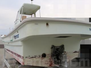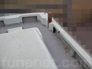 ◆船体のゲルコートは船齢なりの日焼けなどによる経年劣化は見受けられます。またハルはオモテの両舷に係留時についたと思われる擦り傷やゲルコートが剥げたようなアテ傷、がありますが、ゲルコートが剥げていた箇所は補修されています。また、それらの傷は内部のFRPが割れるような重篤な傷ではありませんので、航行には影響が無いと思われます。