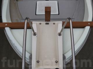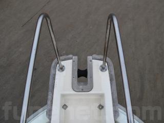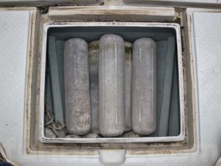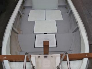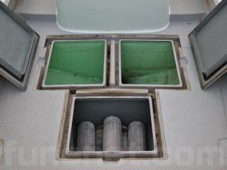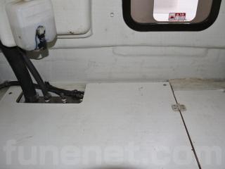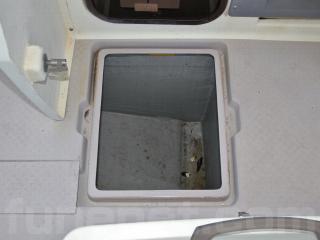 ◆この艇はアフトデッキ(トモ)が"出ドモ”になっていますので、エンジン・フードの後ろも歩けます。また、エンジンフードが腰掛けになりますので、トモでの餌釣りも勝手が良さそうです。また、トモの最後尾には点検口があり、開けるとスターンドライブの真上ですので、ロープを巻き込んでしまった時など何かのトラブルの際にはすぐに確認ができます。