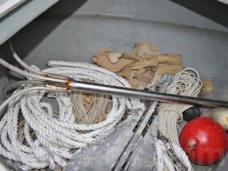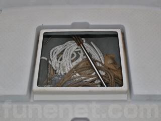 ◆バウスプリット、バウレールもしっかりしています。また船首のカンザシもしっかりしていました。カンザシの後ろにはアンカーロープストレージがあり、またその後ろのブリッジ前にはストレージ1間と大きめのイケス2間が備わっています。また、アフトデッキ(トモ)にはストレージ1間が備わっています。