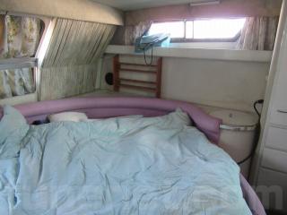 その前方はバウキャビンになっています。大人2人が横になれる位のベッドが装備されています。