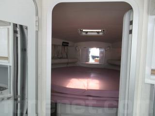 後方に向かうと、そこはオーナーズルームになります。大きなベッドの装備があります。キャビン内にはTV、トイレ、シャワールーム、バスタブなどがあります。