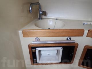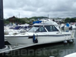 こちらの船は、クルーザータイプの人気のモデルPCシリーズで、子どもや女性が乗船しても安心して楽しめるキャビンの設備と内装、そして優れた走波性能を併せ持っています。