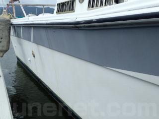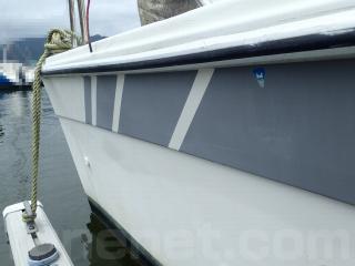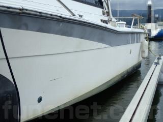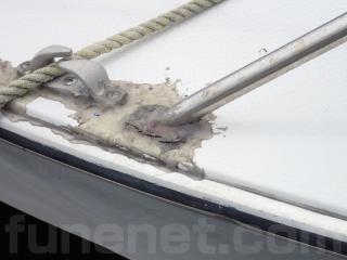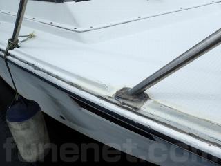 〇船歴は経ちますので、擦れやキズなどはあります。船体には大きな致命傷な損傷箇所ないようですが、バウデッキ部分の手すりの取り付け部分に補修箇所があります。