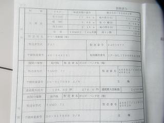 | 検査手帳馬力 | 270馬力 / 2400rpm(回転数) |