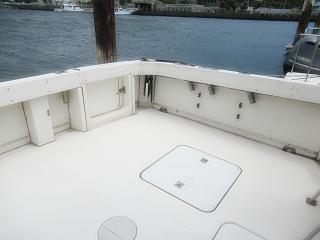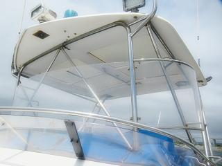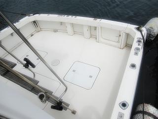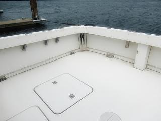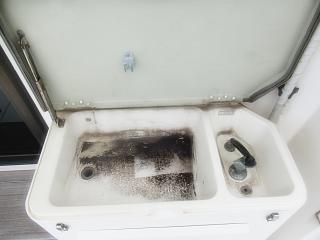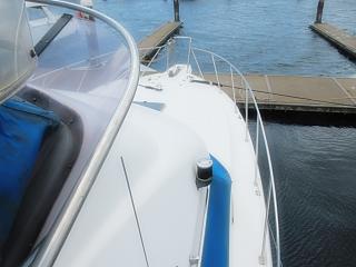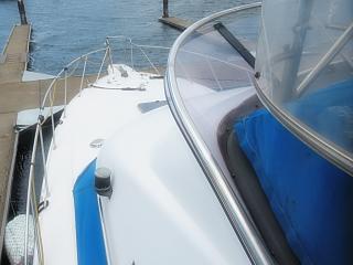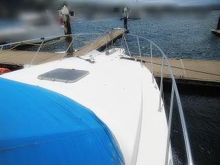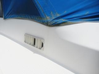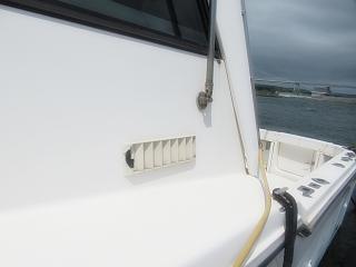 気にになる点では、換気ダクト(損傷ヶ所)、FBシートの埃汚れ、トランサムステップの木部色褪は有ります、それ以外は全体的に非常に綺麗な状態の船体と見受けられました。
