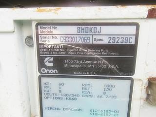 メーカー名:オナン ワット数:8kw 燃料:軽油 |