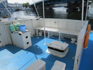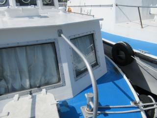 以前は現場視察船として使用されていましたが、現在は交通船や作業船として使用しています。建造時は24トンの船舶でしたが現在は13トンに減トンして使用しています。